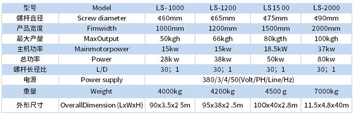 | 螺桿數 | 單螺桿 | 螺桿直徑 | 75(mm) | 最大擠出直徑 | 1600(mm) |